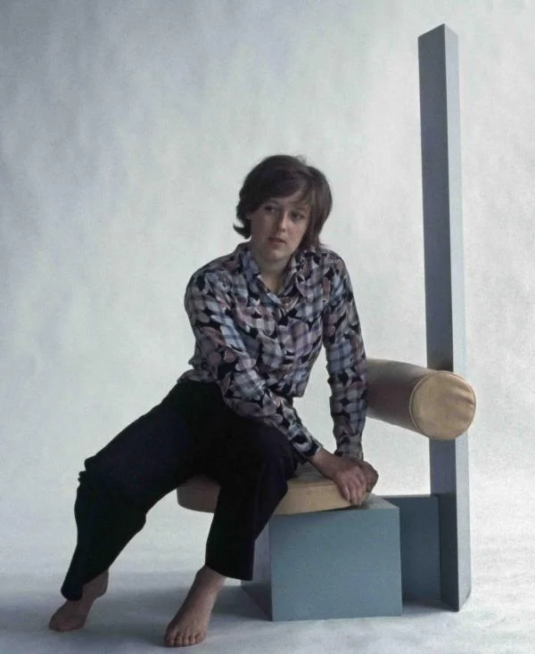 But no. The pink chair was designed way back in 1968, and by someone you may never have heard of, unless you are an insider in British design circles. Her name is Jane Dillon. Here’s a picture of her, sitting in one of her other chairs from the late ’60s.
