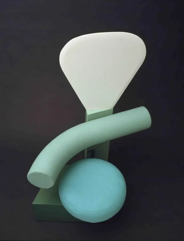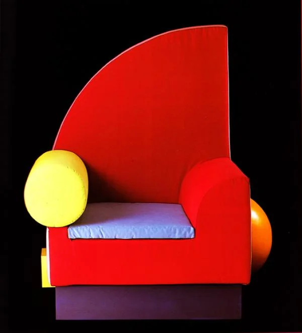 If you guessed ‘last year,’ I don’t blame you. It’s got a fashion-forward pinkness about it, and the combination of circle, curve and triangular wedge has the minimal snap of the latest out of Milan. Or perhaps you went for ‘1981’? I wouldn’t blame you. The chair does look pretty postmodern, and even bears a passing resemblance to Peter Shire‘s iconic ‘Bel Air’ chair of that year.