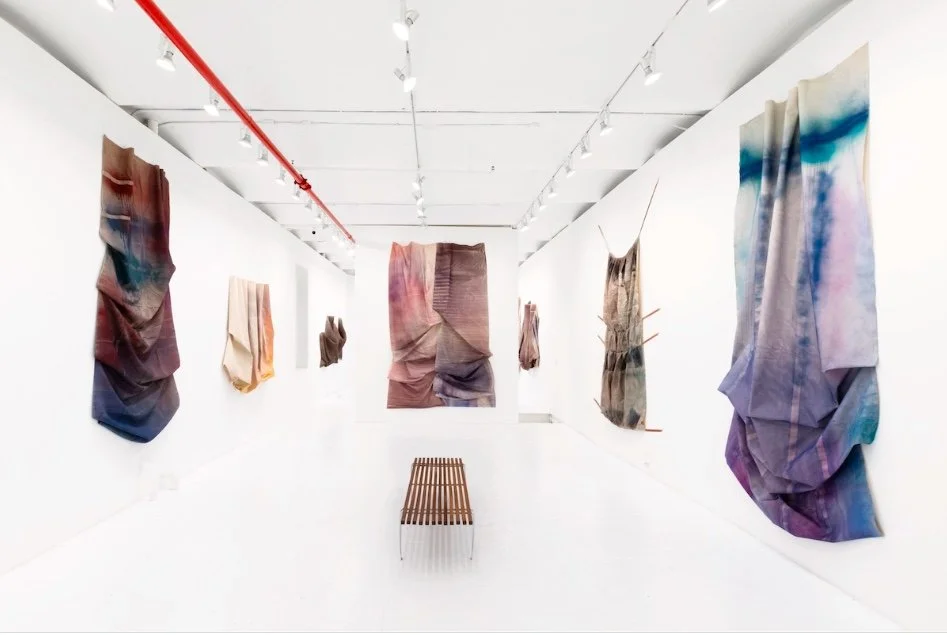 Yankowitz was one of many artists exploring gravitational effects at the time, among them Sam Gilliam (whose draped paintings Yankowitz had not seen prior to developing her own), Robert Morris (whose felt works she admired), and Eva Hesse (whose arrangements of string and cloth she knew through their mutual friend, Sol LeWitt). All investigated how a composition could seemingly make itself when dropped into space—a formal link that was recognized at the time. Yankowitz and Hesse were the only women included in the 12-person survey “Hanging/Leaning,” at the Emily Lowe Gallery at Hofstra University in 1970. Robert Pincus-Witten, in an Artforum review of Yankowitz’s 1971 Kornblee show, compared her directly to Gilliam, who was having a concurrent exhibition at MoMA. Like Mellow, Pincus-Witten used patronizingly patriarchal language: “the essential loveliness of the work is beyond contest, although the devices of her art seem to be outmoded.… [H]er lack of aggressiveness indicates that she remains on a sill which, once crossed, will bring her beyond mere stylistic hold.”